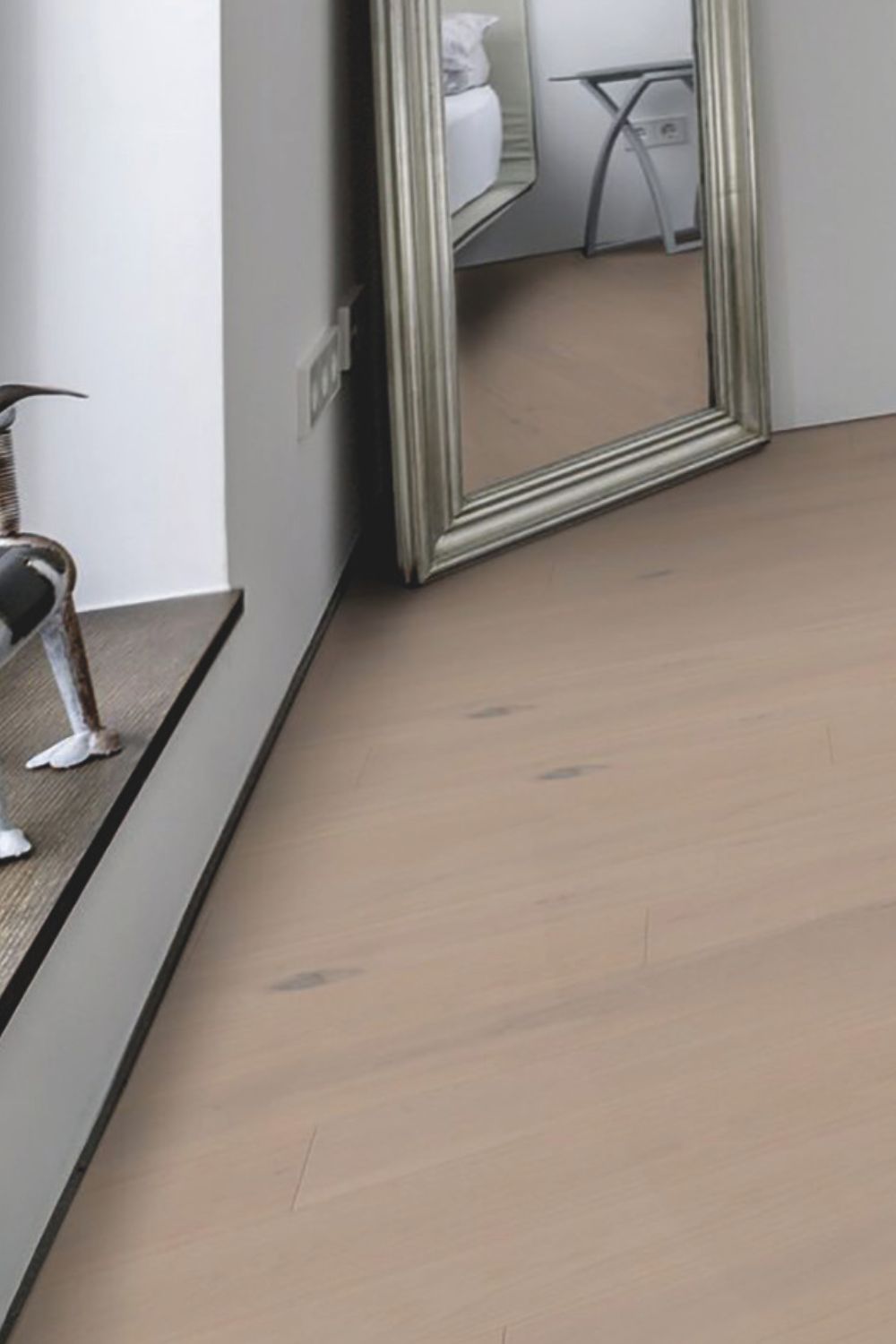 Landhausdiele aus Eiche, country, greige-farbig natur geölt, fein gebürstet, rundum gefast, ca. 2,5 mm Nutzschicht, 5G-Klickverbindung