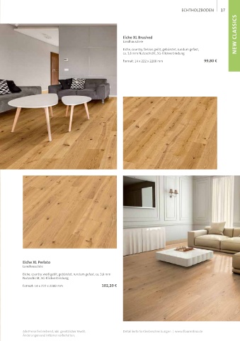 Eiche, country, farblos geölt, gebürstet, rundum gefast,
